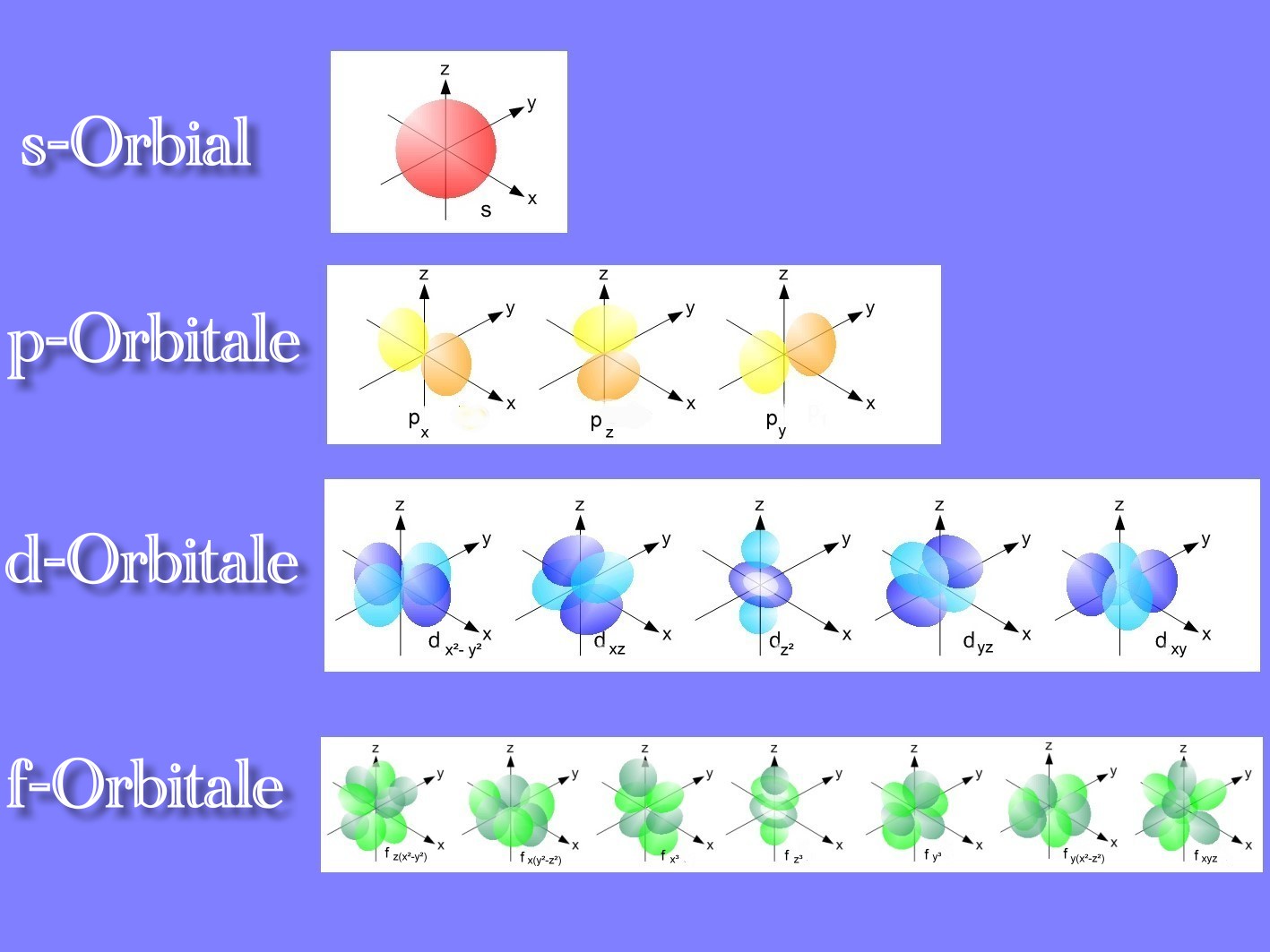 unterschiedliche Orbital-formen und Orbitalgrößen.