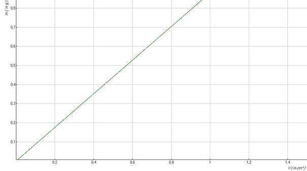 Aus den näherungsweise gleichen Quotienten k = m : V kann man als Proportionalitätsfaktor die molare Masse des Stoffes ( in g ∙ cm³ ) schlussfolgern.