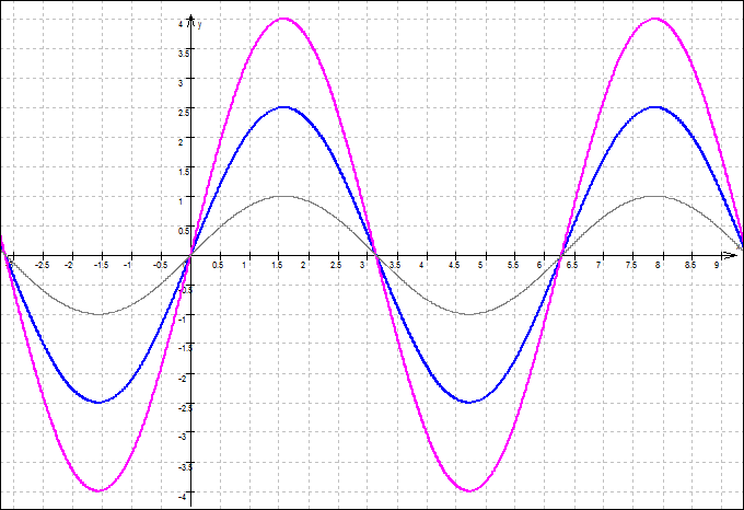 y = f3(x) = 2,5 sin x y = f2(x) = 4 sin x y = f1(x) = 1 sin x